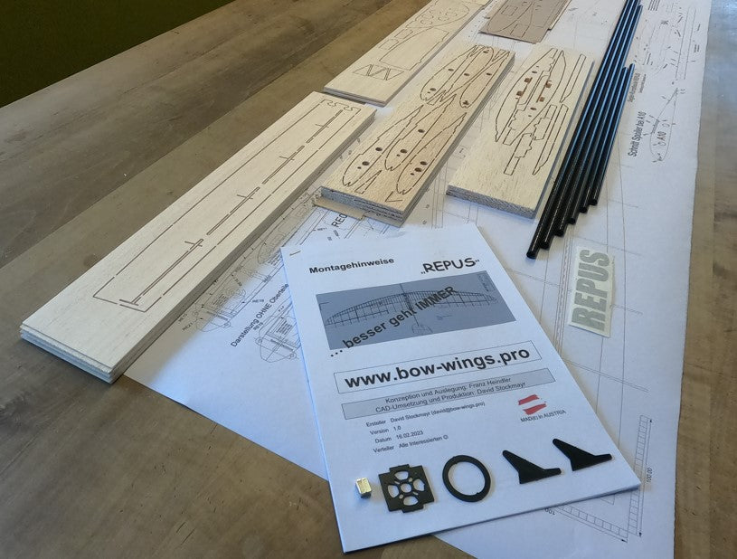 • Precision-cut, CNC-milled components made of balsa and plywood for wings/tail assembly, trailing edges